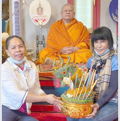 41. วันที่ 13 เมษายน 2564 วันสงกรานต์ วันปีใหม่ไทย คุณอ้อย ใจ ได้บุญขึ้นปีใหม่ไทย ที่วัดศรีนครินทรวราราม เพื่อไปขอพร  พระเทพกิตติโมลี  เจ้าอาวาส และได้ ร่วม ฉลอง กับ เพื่อนคนไทย สรงนํ้าพระ และได้ ร่วมนำเงินทำบุญจากเพื่อนคนไทยที่รวบรวม รวมยอด ได้ทั้งหมด 240 แฟร้ง